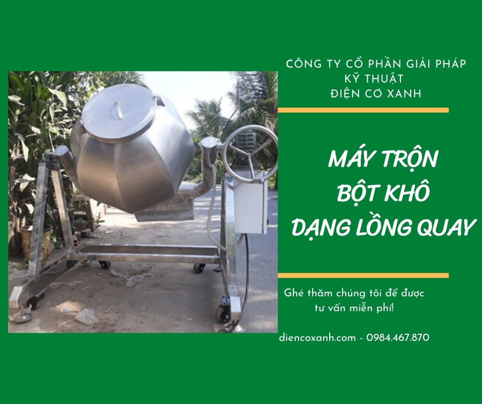MÁY TRỘN BỘT KHÔ dạng lồng quay do ĐIỆN CƠ XANH thiết kế chế tạo với tính năng đảo trộn tốt giúp phối trộn đều các loại nguyên liệu dạng bột như: sữa bột, bột cà phê, bột gia vị, hay các loại thức ăn dùng trong chăn nuôi,...