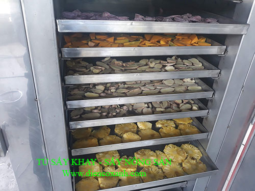 Tủ sấy khóm (tủ sấy khây) chuyên dùng để sấy khóm (thơm, dứa) và tất cả các loại nông sản như: sấy khoai lang, sấy bí đỏ, sấy cà rốt, các loại rau củ...cách sấy nhiệt độ thấp giúp giữ được chất lượng sản phẩm tốt nhất.