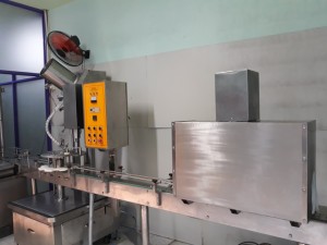 3. Sau khi chiết xong băng tải đưa chai ra ngoài băng tải chính, tùy theo yêu cầu mà người sản xuất có thể lắp đặt máy vặn nắp tự động hay vặn nắp bằng máy thủ công.