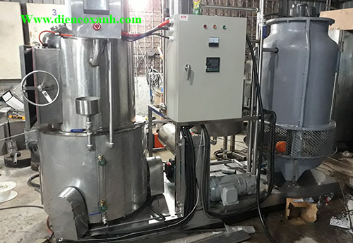 - Hệ thống máy chiên bao gồm: Bộ máy chiên chân không, thiết bị ly tâm.