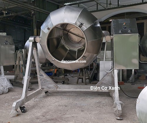 Máy trộn thực phẩm lồng quay dạng khía Điện Cơ Xanh được chế tạo từ inox 304 chất lượng, chuyên cho ngành thực phẩm.