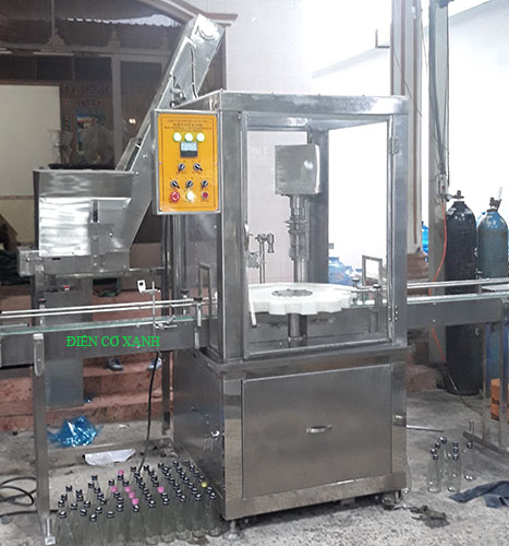 Diện Cơ Xanh giới thiệu dây chuyền chiết rót đồ uống, nước ngọt, nước giải khát, hệ thống gồm: máy tiệt trùng chai bằng đèn hồng ngoại, máy chiết rót tự động, máy ren nắp chai tự động. Quy trình này được thực hiện hoàn toàn tự động, liên tục giúp sản phẩm sản xuất ra đạt yêu cầu an toàn vệ sinh thực phẩm.