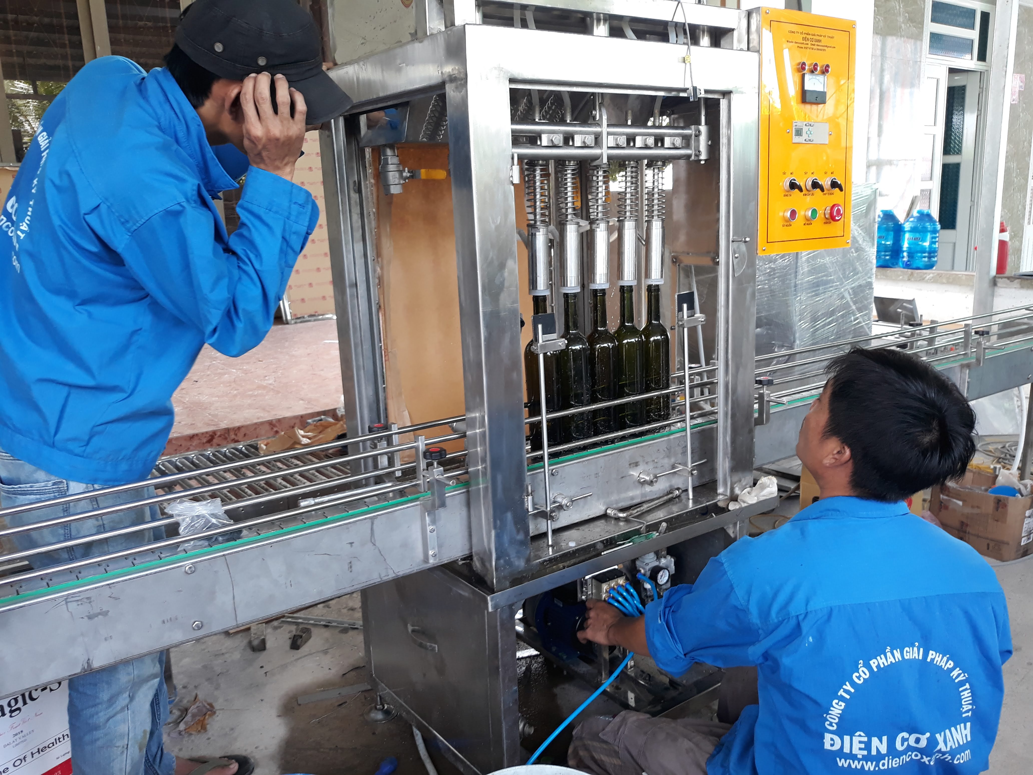 Dây chuyền được chế tạo theo yêu cầu, năng suất chiết rót 600 chai/giờ, loại chai 750 ml